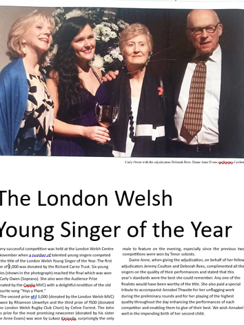 I won the 2017 London Welsh Young Singer of the Year and Audience prize and was then invited as a finalist in the 2018 Welsh Singers Showcase, performing at St David's Hall with the BBC National Orchestra of Wales.